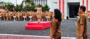 Sekretaris Daerah (Sekda) Minahasa, Dr. Lynda D. Watania, MM, M.Si, bertindak sebagai pembina apel yang diikuti Para Asisten, Kepala Dinas, Kepala Badan, Kepala Bagian, Para Camat, serta jajaran Aparatur Sipil Negara (ASN) di lingkungan Pemerintah Kabupaten Minahasa.