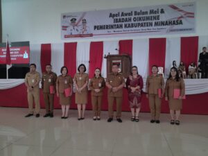 MINAHASA,- WARTAKAWANUA.COM,- Bupati Minahasa Dr Robby Dondokambey S.Si, M.Ap dan Wakil Bupati Vanda Sarundayang, S.S memimpin langsung Apel Awal Bulan Mei dan Ibadah Oikumene Pemerintah Kabupaten Minahasa, Senin (05/05-2025).